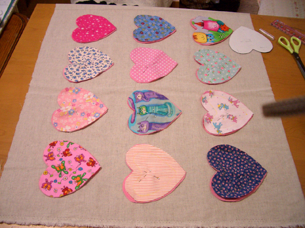 新人さんのハートのバック。 今日はミシンを持込みです。