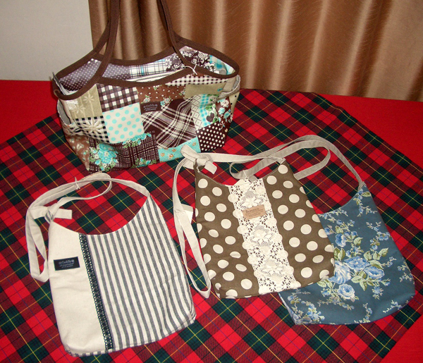 happy arrowさんが、柄違いでキュートな 「ショルダーバック ¥1680」 作りました。 紺の薔薇柄は、ココアちゃんとお揃い。 後ろに大きなポケット付きです。