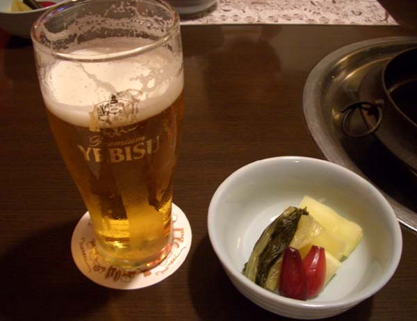 すきやき好き友人が来たので、16号沿い川越の「肉の万世」に。店内も提灯もレトロです。 卵は新鮮で安心な「奥久慈卵」。 ビールは恵比寿(と、謎のお新香)。 肉は奮発、梅・竹・松より、中間の竹(お肉120g・ライス・トン汁・お新香付き¥4980を選択) 「黒毛和牛サーロイン」だい。 うま~!大好きなネギいっぱい。 春菊はいりました。ぐつぐつ・・・幸せ。 ごちそうさま。