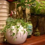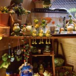 お昼ご飯で、たまにおじゃまする「あんしぇ」さん。椅子の横の棚に、カエルがいます。