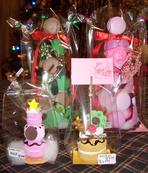 ずいぶん前から、リクエストしていたクリスマスの「メモスタンド ¥420」、かわいいです。クリスマスバージョンの「マカロンタワー ¥1575」や、ストラップいろいろ作りました。ちょこちょこと、こまめに納品ちうのマカロンさん、えらい!