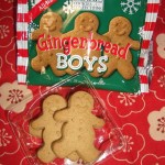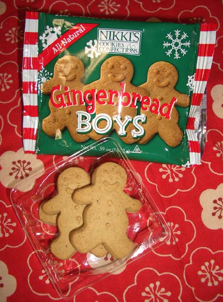 クリスマスのお菓子も、いろいろ入荷しています。ので、お味見ちゅう。パッケージがキュートな「ジンジャーブレットボーイスナックパック ¥168」 3個入りです。