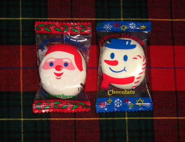 「ジャミーマロー 1個¥21」は、マシュマロの中にジャムの入ったサンタと、チョコの入ったスノーマンで、味は2種類。