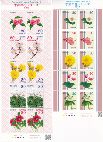 人気の切手 「季節の花シリーズ 第4集」 50円 と 80円 も、新発売。