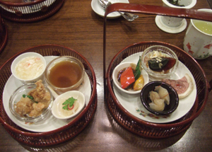 小さな可愛い蒸籠に入った点心と、